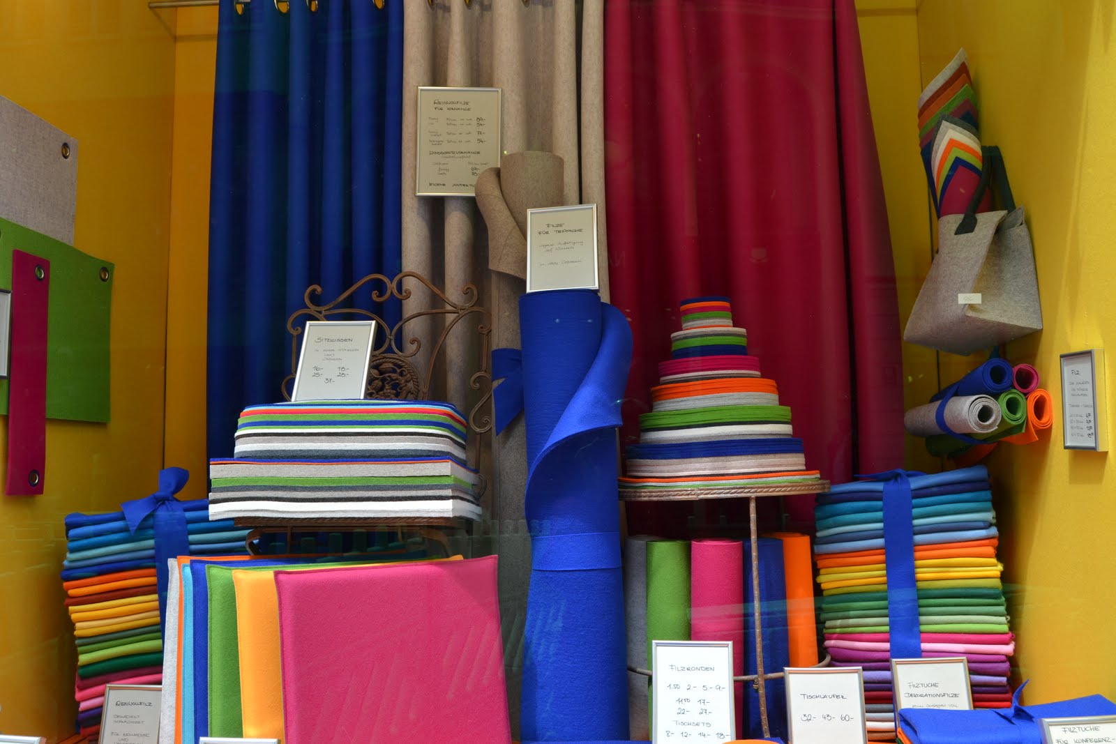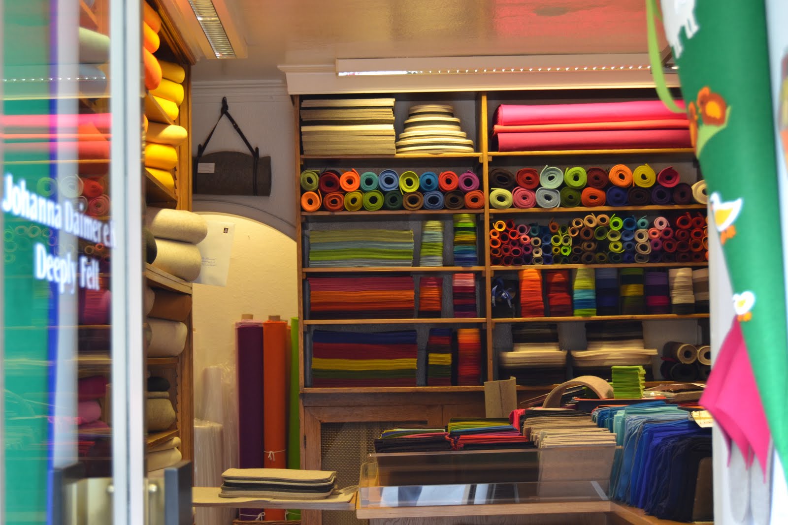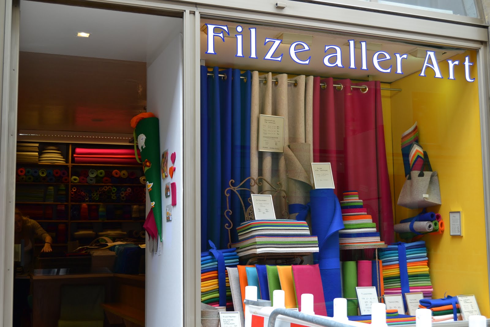 En Filzer aller Art sólo venden fieltro. De todos los colores imaginables, con diferentes formas y grosores. Para hacer bolsos, juguetes, posavasos, cojines y todo lo que la imaginación permita. Una tienda pequeñita en el centro de Munich, al lado de Marienplatz, a la que siempre me acerco cuando voy a esta ciudad. Es un auténtico paraíso para la creatividad, una de esas tiendas en las que no hace falta comprar nada para disfrutar contemplando sus policromáticas estanterías. Una única pega: no es precisamente barata.