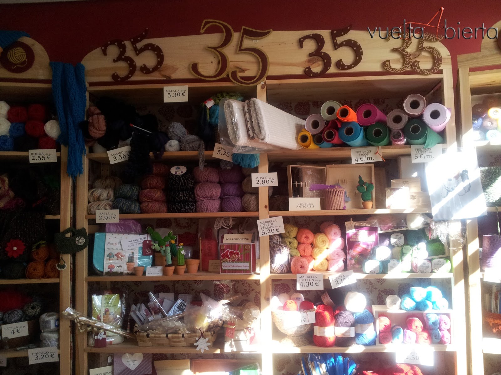 En esta pequeña tienda-taller de Madrid rebosante de creatividad se cumple a rajatabla la filosofía de Vuelta Abierta: cada vez que voy por allí y antes de poner un pie en la calle ya estoy buscando una excusa para volver. Y no es de extrañar con esos papeles, cintas, fieltros, lanas y todo tipo de materiales de lo más tentadores para lo que algunos empiezan a llamar «ocio creativo». Además todo a precios más que competitivos y con un buen ambiente que engancha. Organizan cursos y talleres de ganchillo, punto, scrapbooking, decoupage o encuadernación, relajantes, divertidos y hasta con pausa para tomar un café o un moscatel, lo que cada uno guste. Absolutamente recomendable.